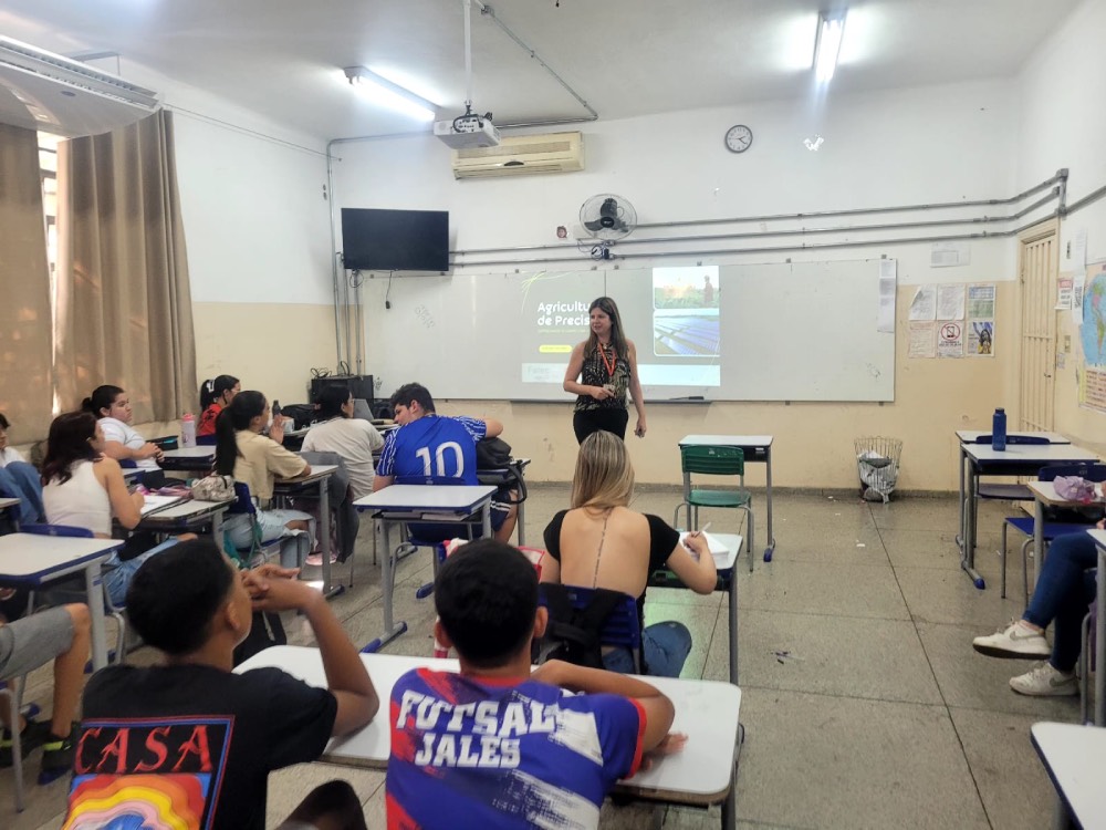 Com o objetivo de aproximar os estudantes do ensino médio da evolução tecnológica no campo, a Prof.ª Dr.ª Adriana de Souza Colombo, coordenadora do curso de Tecnologia em Agronegócio, ministrou uma palestra sobre agricultura de precisão, no dia 3 de setembro, na E.E. Dom Artur Horsthuis.