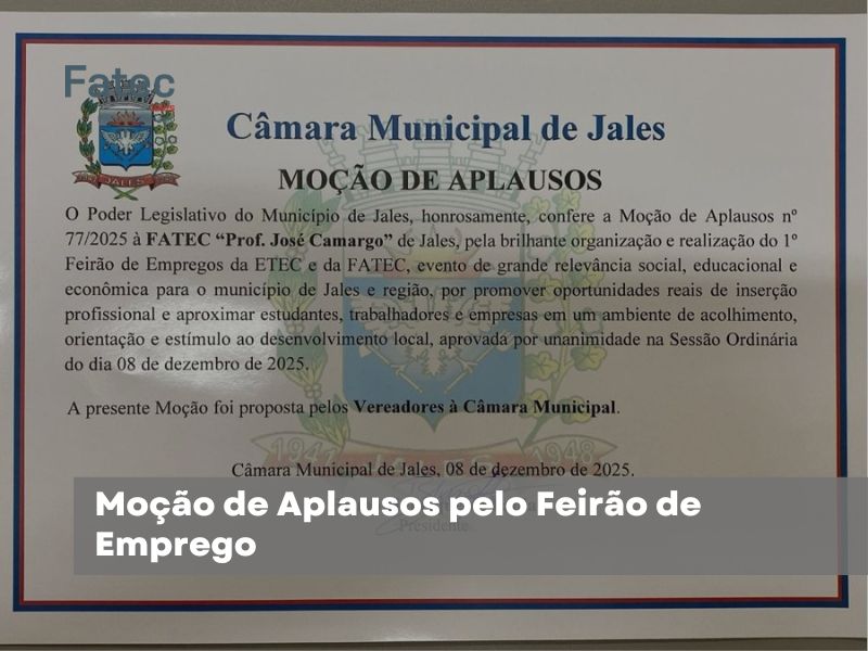 O horário de funcionamento da Fatec Jales, será das 08h00 às 17h00, no período de 15/12/2025 até 06/02/2026.
