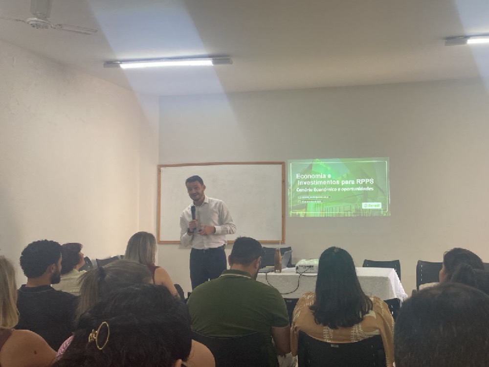 Leonardo Moreira Heckler, CFP®️ e assessor de investimentos, conduziu o encontro com a palestra “Economia e investimentos para RPPS – cenário econômico e oportunidades para o segmento”, promovendo importantes reflexões sobre o tema.